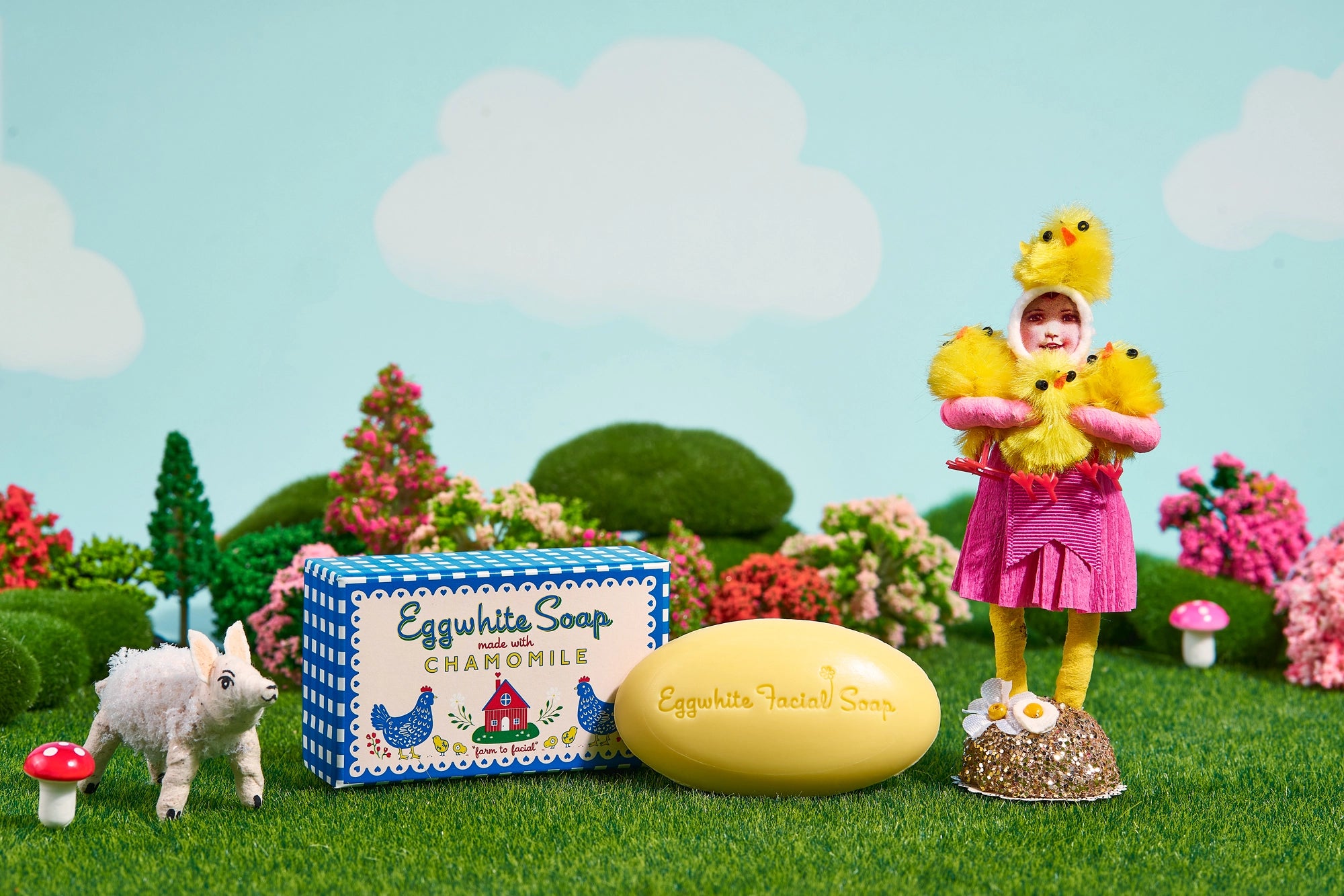 Say goodbye to dirt, makeup, and dull skin with the Eggwhite and Chamomile Facial—a mini spa treatment right at your sink! This magical facial gently calms, hydrates, tightens pores, and leaves your skin feeling softer. Farm-to-facial fun: Add some warm water to your Eggwhite bar to create a lovely, rich lather. Smooth over your face and neck. Let it work its magic for five minutes. Then, gently rinse off and pat dry. Enjoy the radiant glow!