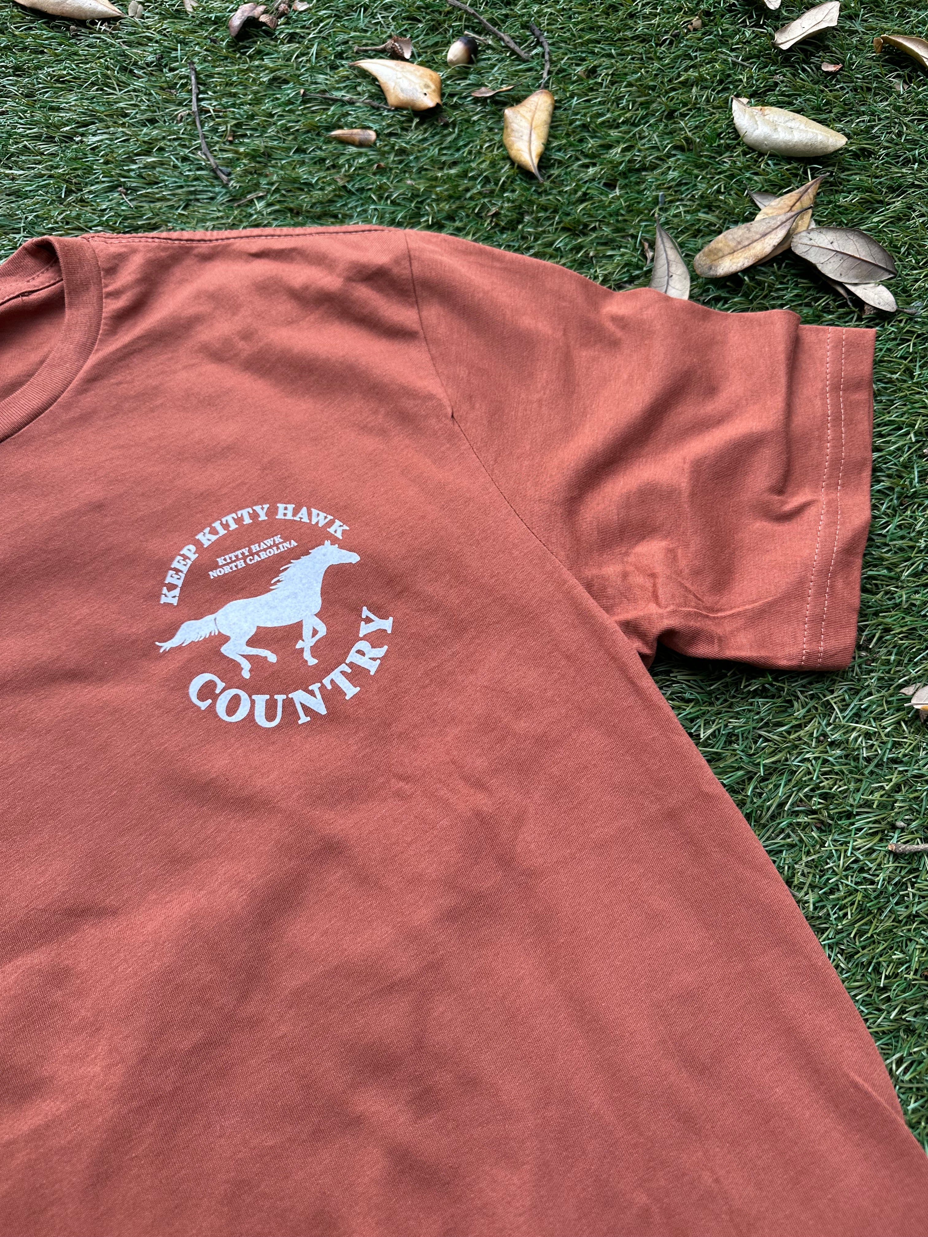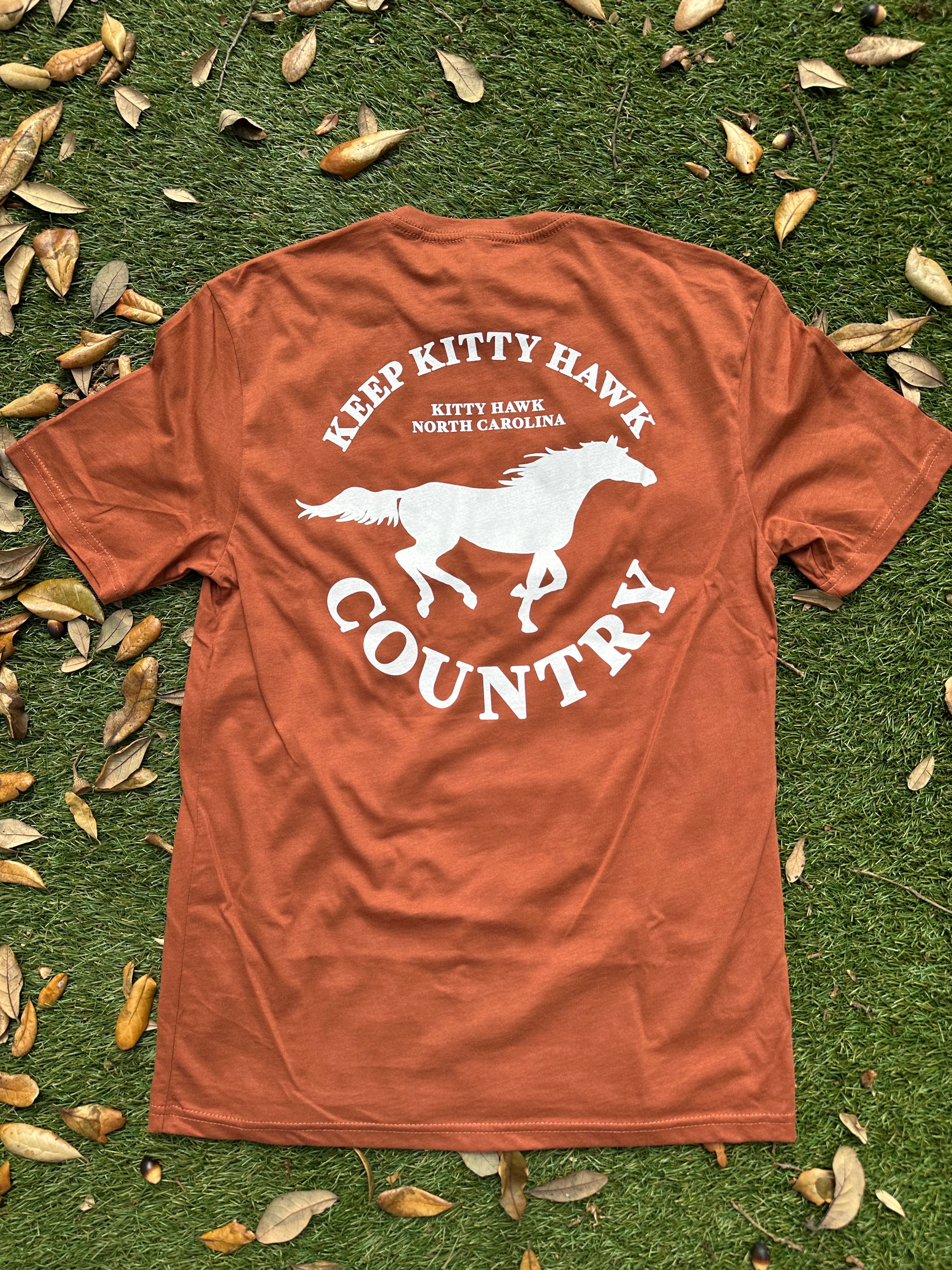"Welcome to Kitty Hawk, the Country side of the beach".... Let's keep 'er wild 'n free just like they thoguht she'd always be! Roosters, chickens, horses, heck even donkeys are welcome here. As Kitty Hawk natives this is a cause close to our heart.....original graphic is printed on 100% cotton "perfect weight" t-shirt. Unisex sizing.