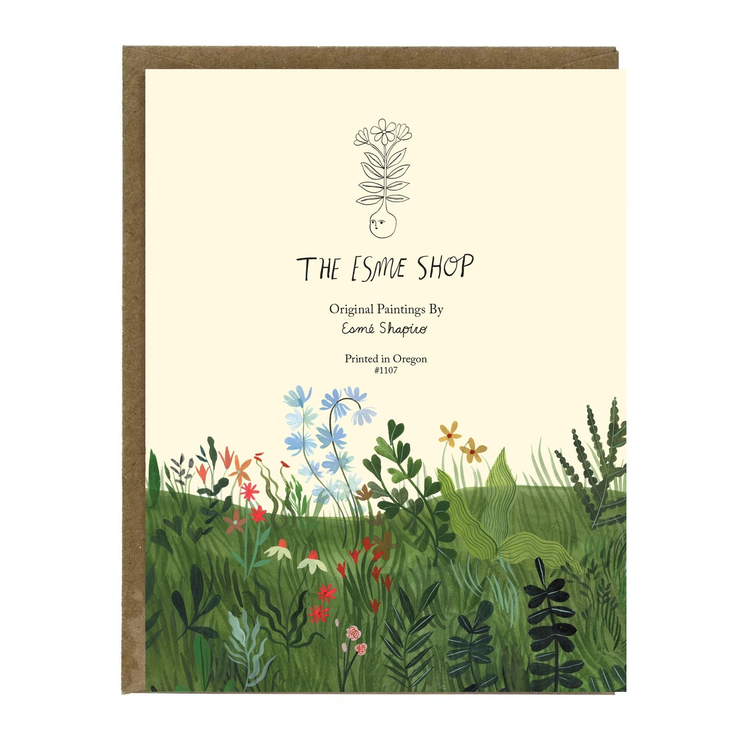 • Illustration from the storybook "A Garden of Creatures" written by Sheila Heti & illustrated by Esmé Shapiro - published by Tundra Books. • 4.25" x 5.5” sleeved A2 card, blank inside and paired with a Kraft envelope. • Printed responsibly in the United States on 100# vellum with post-consumer recycled paper. • Illustrated by beloved Children’s book illustrator Esmé Shapiro.