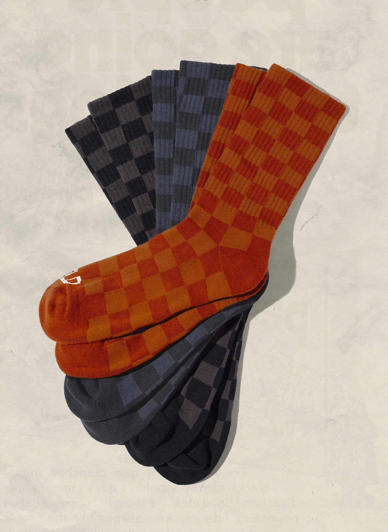 A classic pair of crew socks made in our signature tonal checkerboard print… dig it? Designed with soft cotton in a weight that’s the perfect amount of thickness, these comfortable socks will upgrade your usual rotation. * 76% Cotton 22% Polyester 2% Elastane * Fits adult shoe size 9-11 * Variety of earth-toned checkerboard colors available