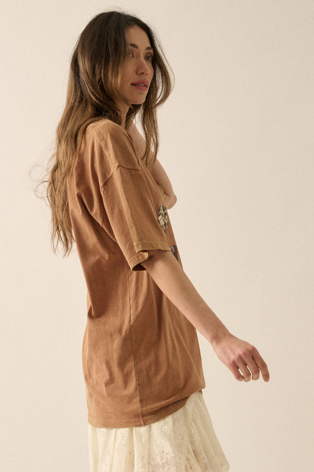 A mineral-washed graphic t-shirt that's perfectly oversized in all the right ways! Vintage-style dog portraits graphic. Round neckline. Short sleeves. Drop shoulder. Oversized fit.
